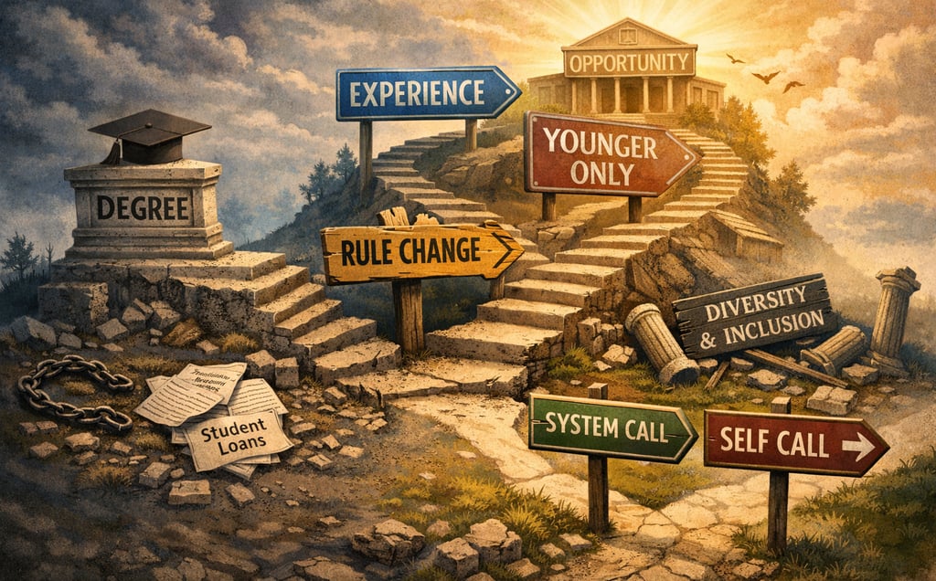 Many people make what I call a system call. A system call means shaping your life around the standards institutions claim will lead to opportunity. Get the degree. Build the resume. Follow the path the system says is necessary to land the job you want. For decades many people did exactly that. But when institutions redefine merit after those sacrifices are made, people begin to reconsider how decisions should be made in the first place.